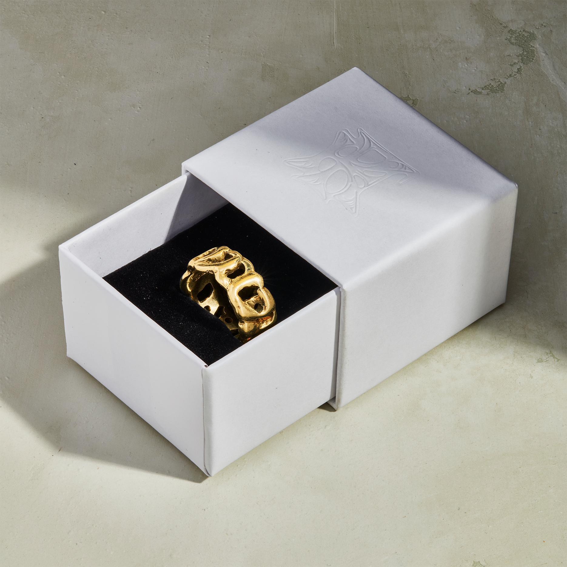 This special holiday package includes our embossed box, a ring sizer and a note describing how our rings are hand carved and truly one of a kind.
